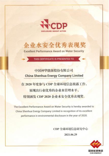 近期,CDP(全球环境信息研究中心)2020中国区优秀管理企业名单揭晓。中国神华荣获2020企业水安全优秀表现奖。