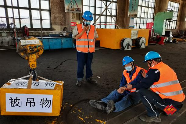 图为开展起重伤害现场处置“安康杯”主题竞赛应急演练